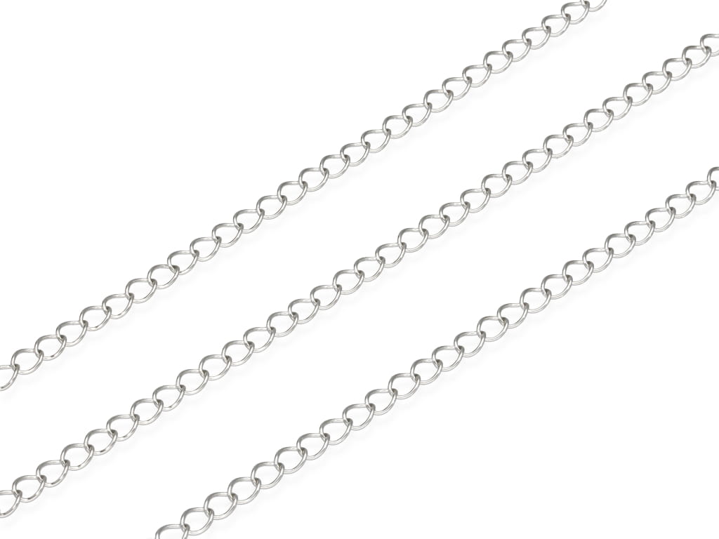Stalowy łańcuszek "twist" zawierający lutowane ogniwa. Przy zakupie kilku opakowań, łańcuszek wysyłamy w jednym odcinku.