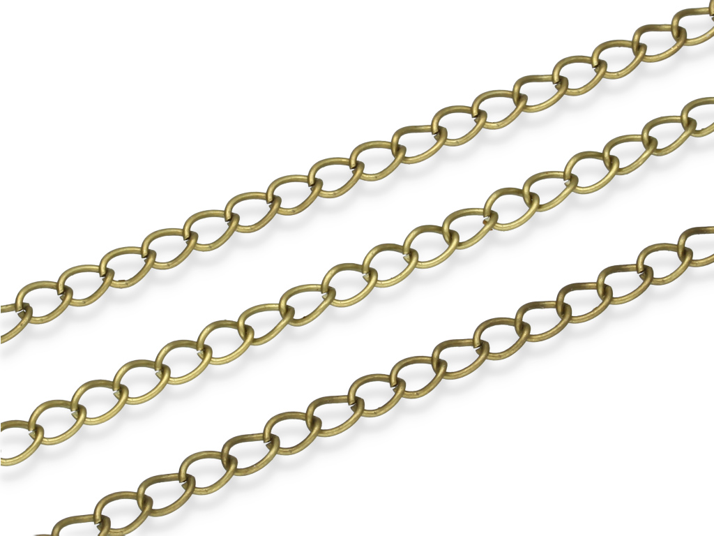 Metalowy łańcuszek "twist". Ogniwa łańcuszka nie są lutowane. Przy zakupie kilku opakowań, łańcuszek wyślemy w jednym odcinku.