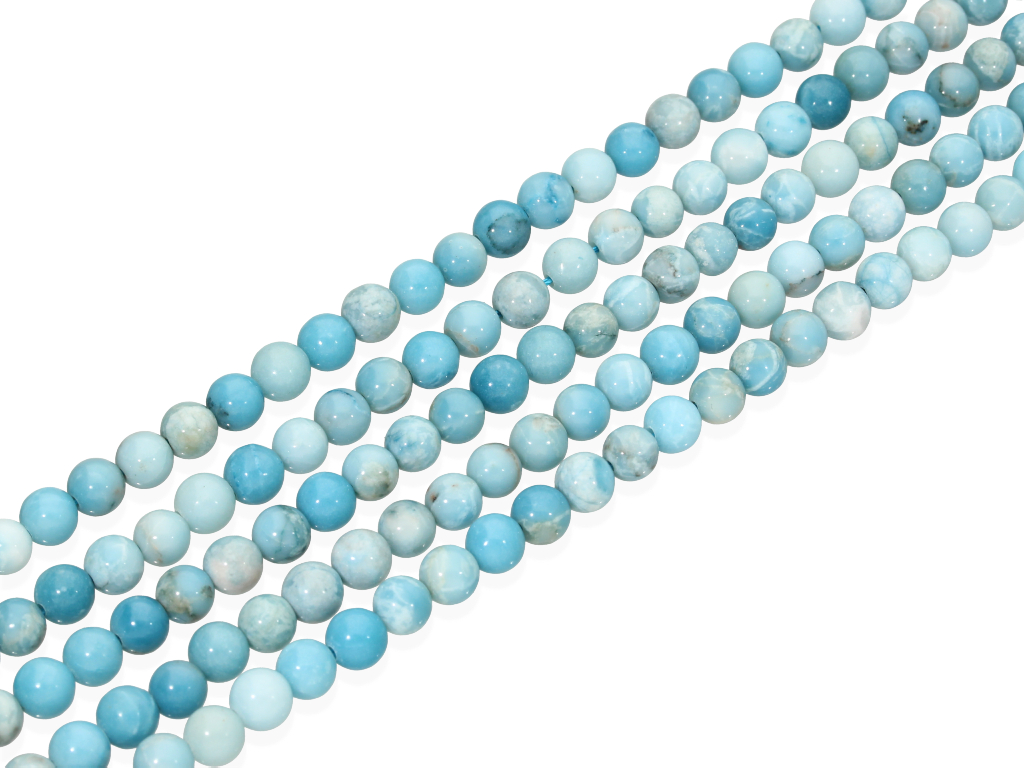 Larimar rekonstruowany w kształcie kulki, sprzedawany w sznurach bez zapięcia, służących do samodzielnego tworzenia biżuterii. Cena dotyczy jednego sznura, który podczas kompletowania zamówienia jest wybierany losowo.