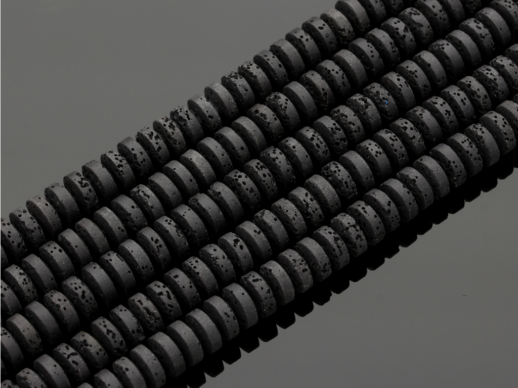 Lawa wulkaniczna w kształcie dysku, sprzedawana w sznurach bez zapięcia, służących do samodzielnego tworzenia biżuterii. Cena dotyczy jednego sznura, który podczas kompletowania zamówienia jest wybierany losowo.