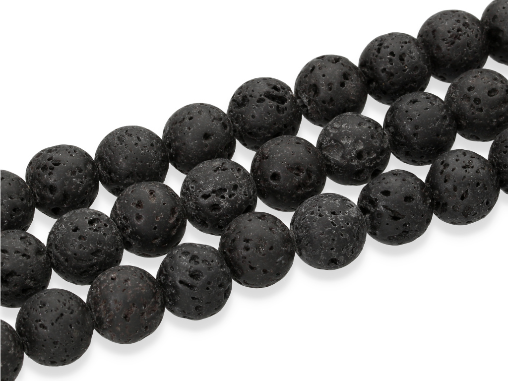 Lawa wulkaniczna w kształcie kulki, sprzedawana w sznurach bez zapięcia, służących do samodzielnego tworzenia biżuterii. Cena dotyczy jednego sznura, który podczas kompletowania zamówienia jest wybierany losowo.