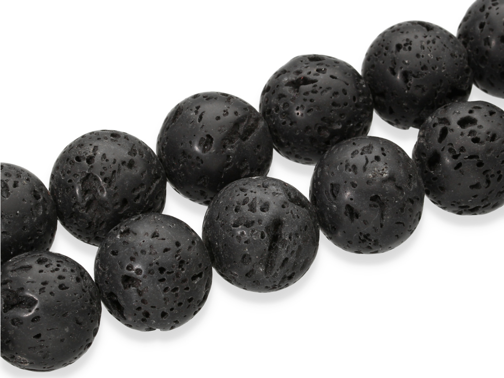 Lawa wulkaniczna w kształcie kulki, sprzedawana w sznurach bez zapięcia, służących do samodzielnego tworzenia biżuterii. Cena dotyczy jednego sznura o długości ~ 19 cm, który podczas kompletowania zamówienia jest wybierany losowo.
