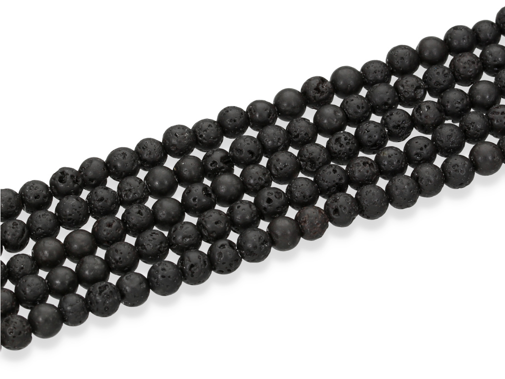 Lawa wulkaniczna w kształcie kulki, sprzedawana w sznurach bez zapięcia, służących do samodzielnego tworzenia biżuterii. Cena dotyczy jednego sznura, który podczas kompletowania zamówienia jest wybierany losowo.