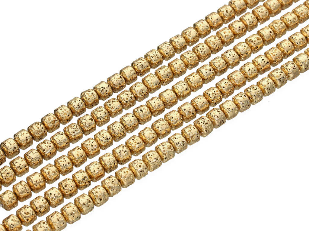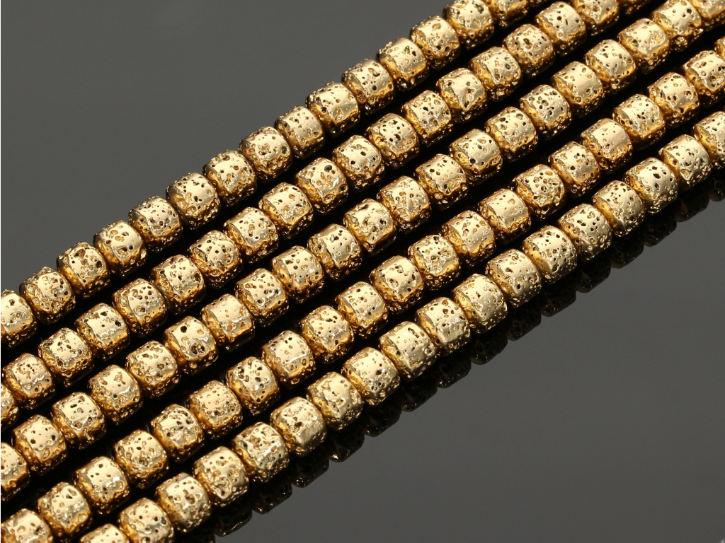 Platerowana lawa wulkaniczna w kształcie walca, sprzedawana w sznurach bez zapięcia, służących do samodzielnego tworzenia biżuterii. Cena dotyczy jednego sznura, który podczas kompletowania zamówienia jest wybierany losowo.