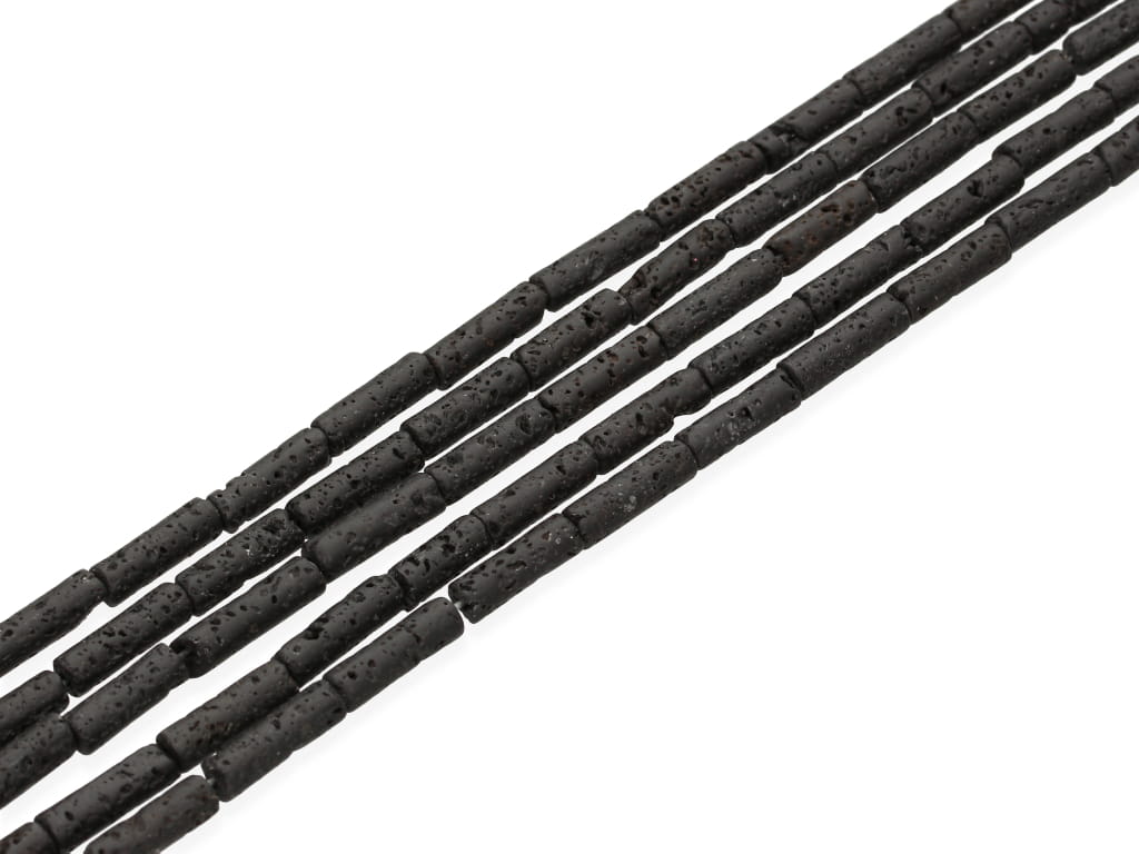 Lawa wulkaniczna w kształcie walca, sprzedawana w sznurach bez zapięcia, służących do samodzielnego tworzenia biżuterii. Cena dotyczy jednego sznura, który podczas kompletowania zamówienia jest wybierany losowo.