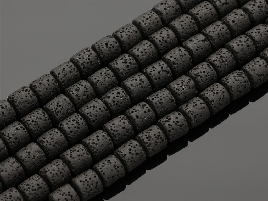 Lawa wulkaniczna w kształcie walca, sprzedawana w sznurach bez zapięcia, służących do samodzielnego tworzenia biżuterii. Cena dotyczy jednego sznura, który podczas kompletowania zamówienia jest wybierany losowo.