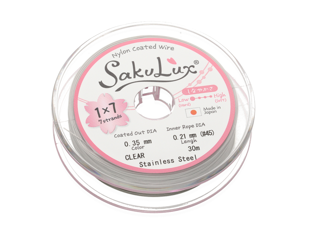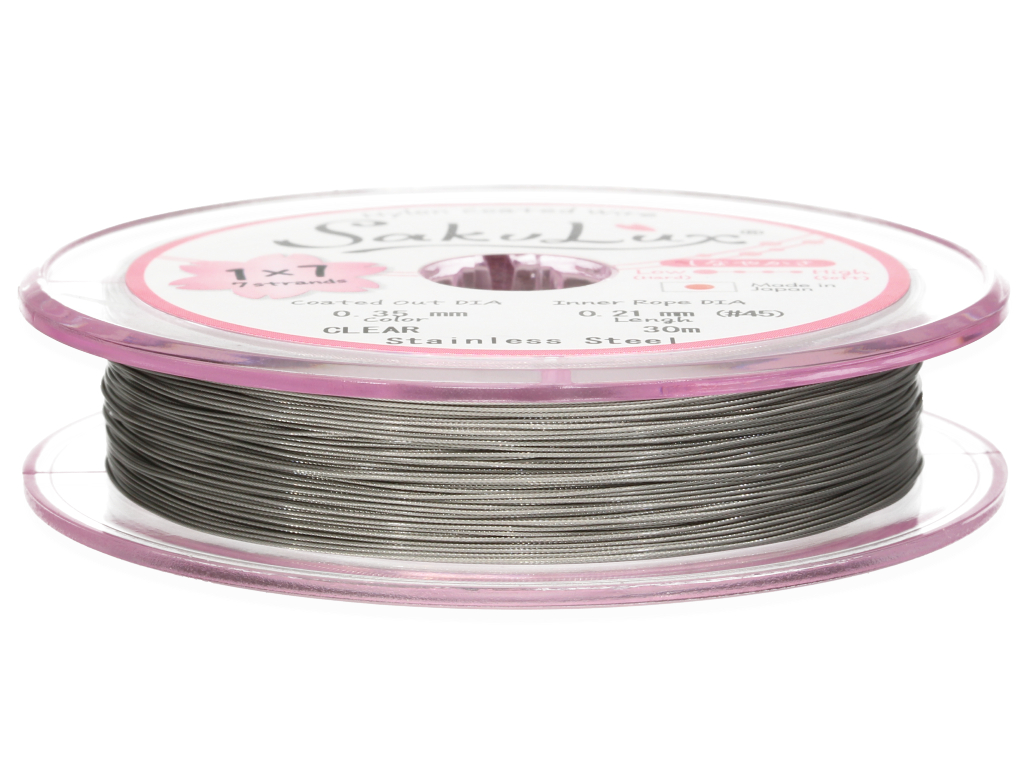 Niezwykle wytrzymała i elastyczna stalowa linka jubilerska, składająca się z 7 cienkich, skręconych ze sobą drucików. Świetnie sprawdzi się jako nośnik do naszyjników lub bransoletek wykonanych z drobnych pereł, minerałów lub innych koralików.