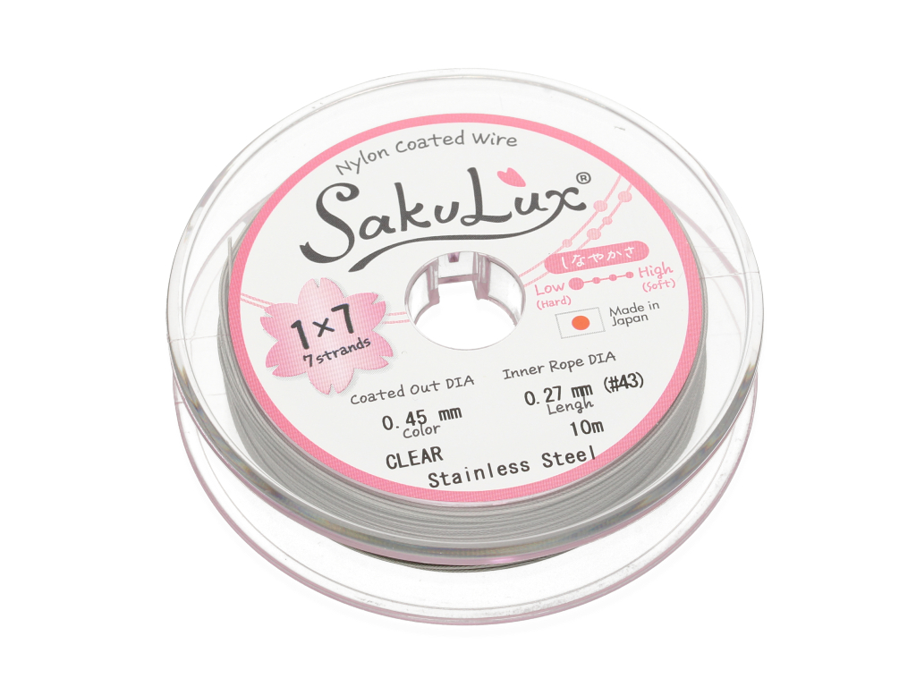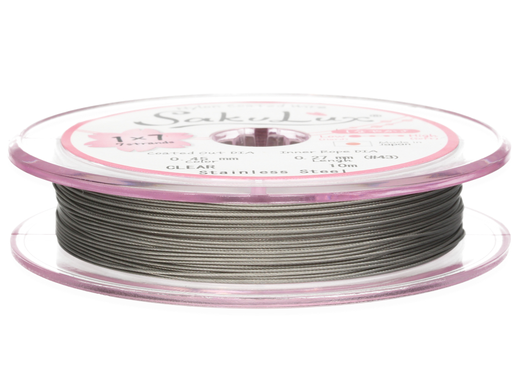 Niezwykle wytrzymała i elastyczna stalowa linka jubilerska, składająca się z 7 cienkich, skręconych ze sobą drucików. Świetnie sprawdzi się jako nośnik do naszyjników lub bransoletek wykonanych z drobnych pereł, minerałów lub innych koralików.