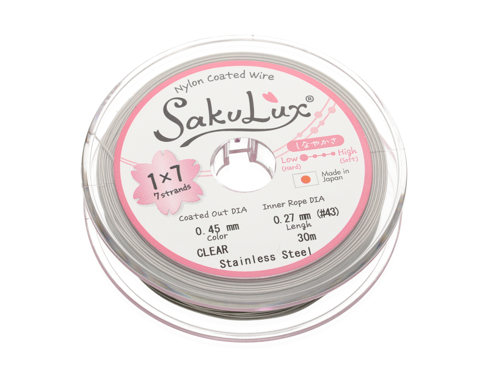 Niezwykle wytrzymała i elastyczna stalowa linka jubilerska, składająca się z 7 cienkich, skręconych ze sobą drucików. Świetnie sprawdzi się jako nośnik do naszyjników lub bransoletek wykonanych z drobnych pereł, minerałów lub innych koralików.