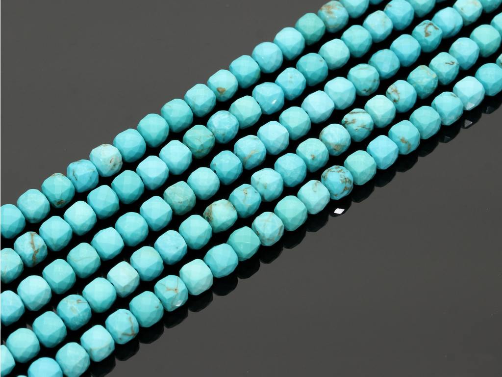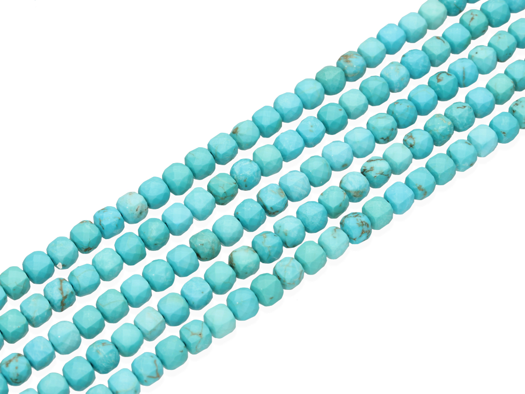 Magnezyt w kształcie fasetowanej kostki, sprzedawany w sznurach bez zapięcia, służących do samodzielnego tworzenia biżuterii. Cena dotyczy jednego sznura, który podczas kompletowania zamówienia jest wybierany losowo.