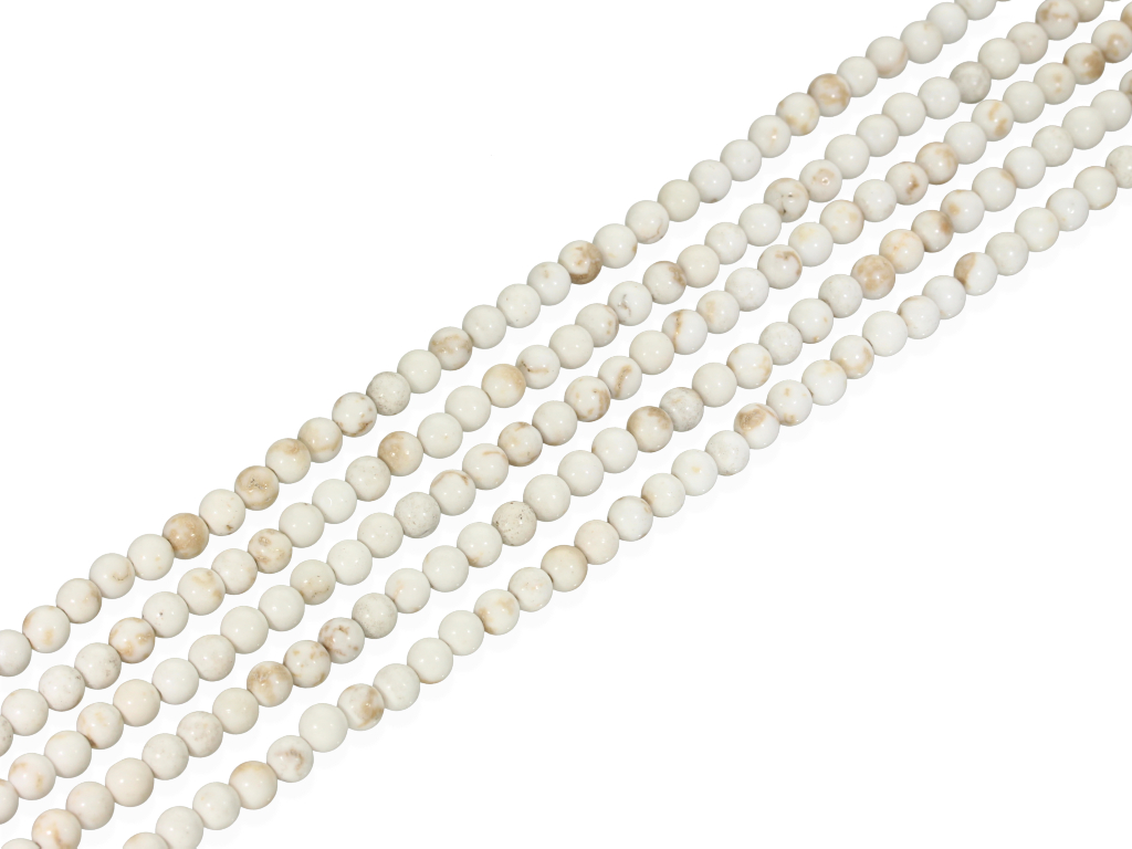 Naturalny magnezyt w kształcie kulki, sprzedawany w sznurach bez zapięcia, służących do samodzielnego tworzenia biżuterii. Cena dotyczy jednego sznura, który podczas kompletowania zamówienia jest wybierany losowo.