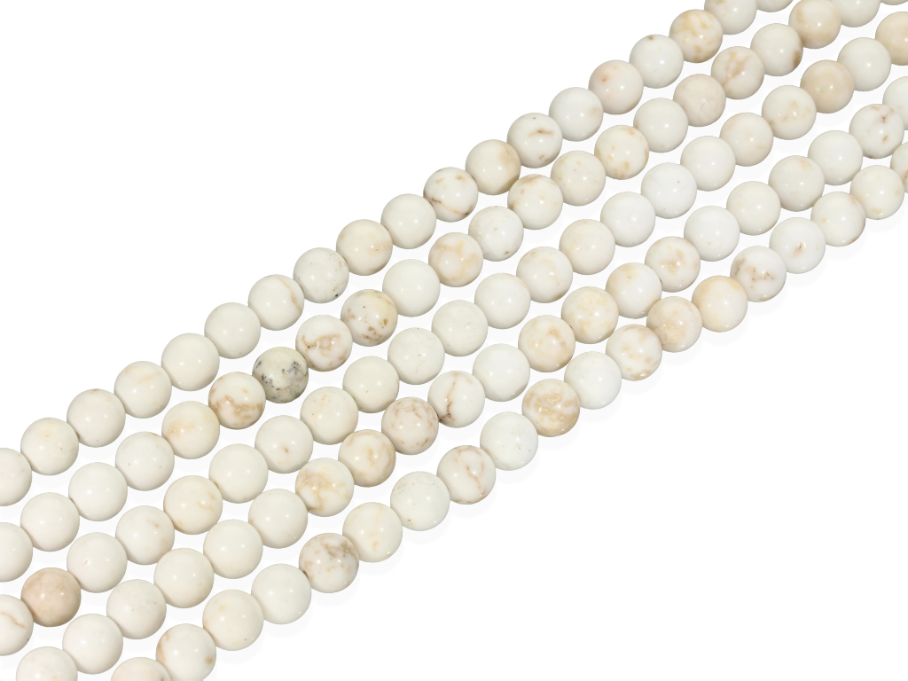 Naturalny magnezyt w kształcie kulki, sprzedawany w sznurach bez zapięcia, służących do samodzielnego tworzenia biżuterii. Cena dotyczy jednego sznura, który podczas kompletowania zamówienia jest wybierany losowo.