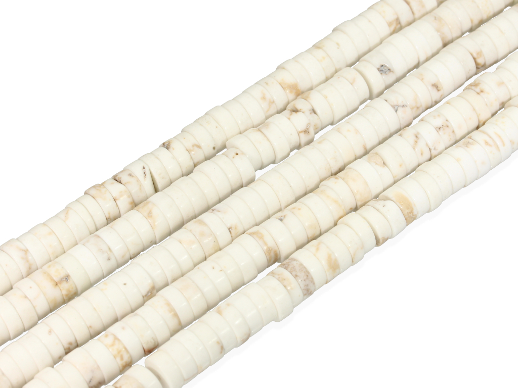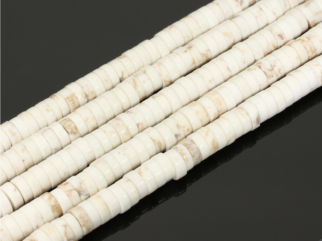 Magnezyt w kształcie plasterków, sprzedawany w sznurach bez zapięcia, służących do samodzielnego tworzenia biżuterii. Cena dotyczy jednego sznura, który podczas kompletowania zamówienia jest wybierany losowo.