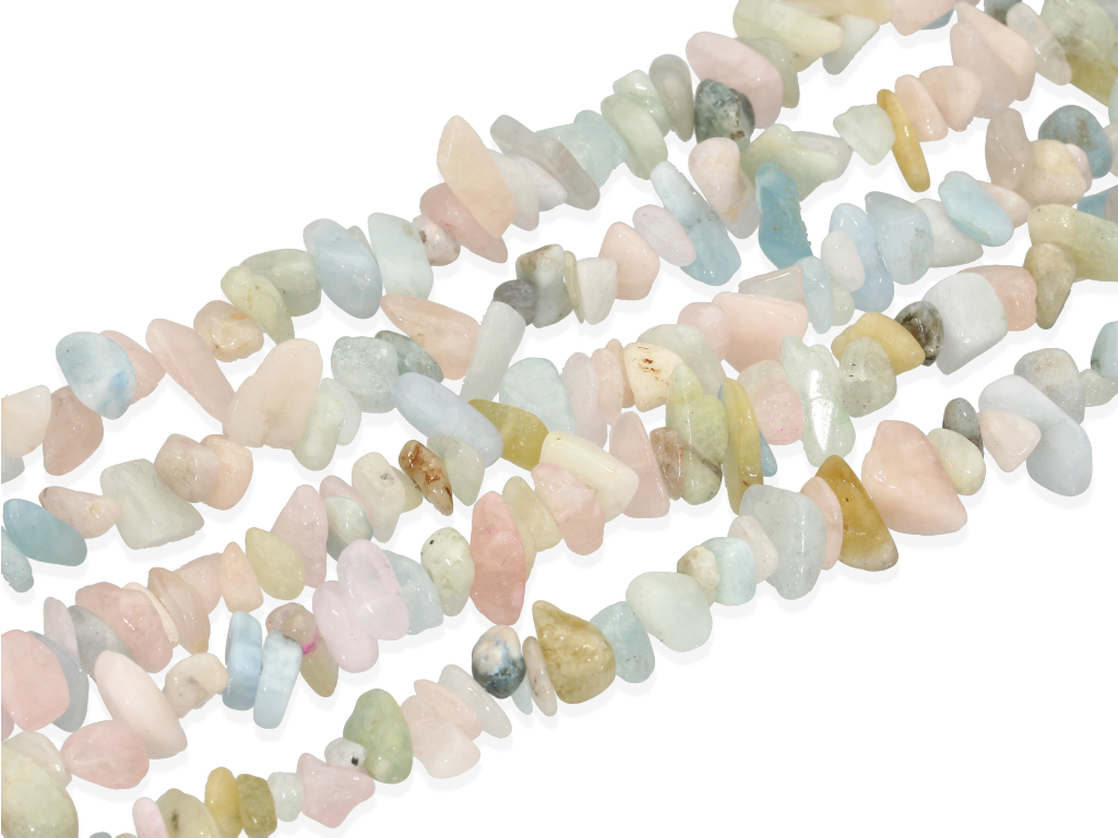 Mix kamieni z przewagą morganitu w kształcie sieczki, sprzedawany w sznurach bez zapięcia, służących do samodzielnego tworzenia biżuterii. Cena dotyczy jednego sznura o długości ~ 80cm, który podczas kompletowania zamówienia jest wybierany losowo.