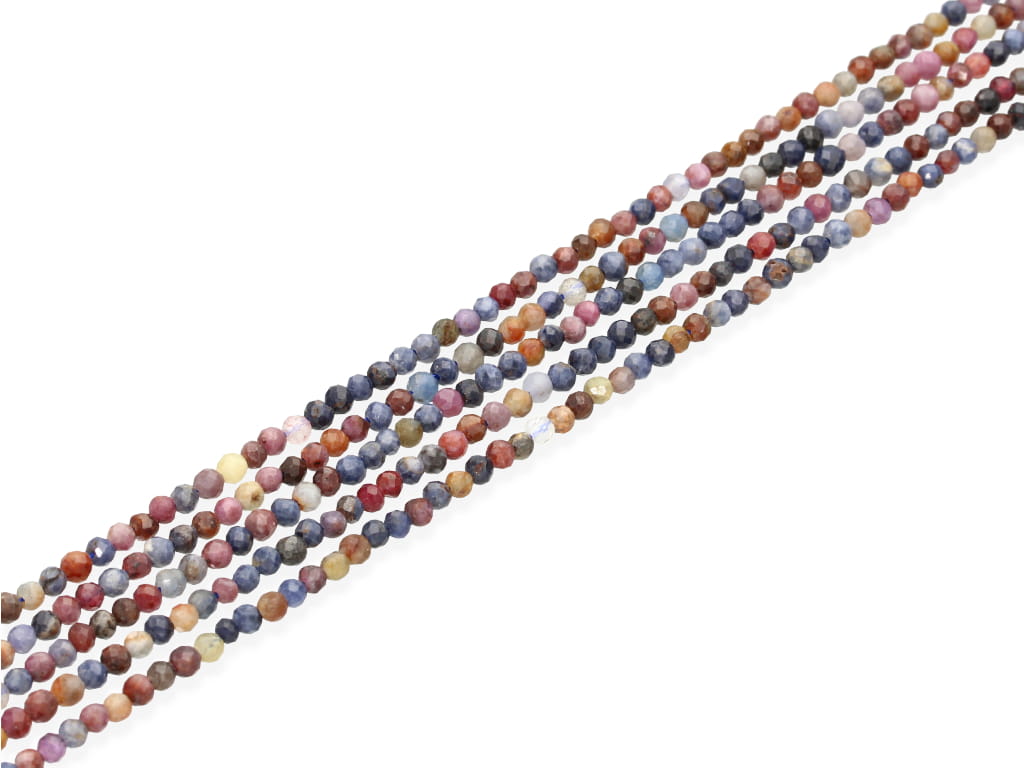 Szafir z rubinem w kształcie fasetowanej kulki, sprzedawany w sznurach bez zapięcia, służących do samodzielnego tworzenia biżuterii. Cena dotyczy jednego sznura, który podczas kompletowania zamówienia jest wybierany losowo.