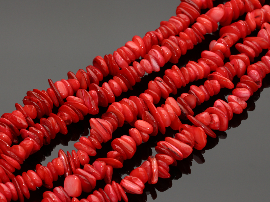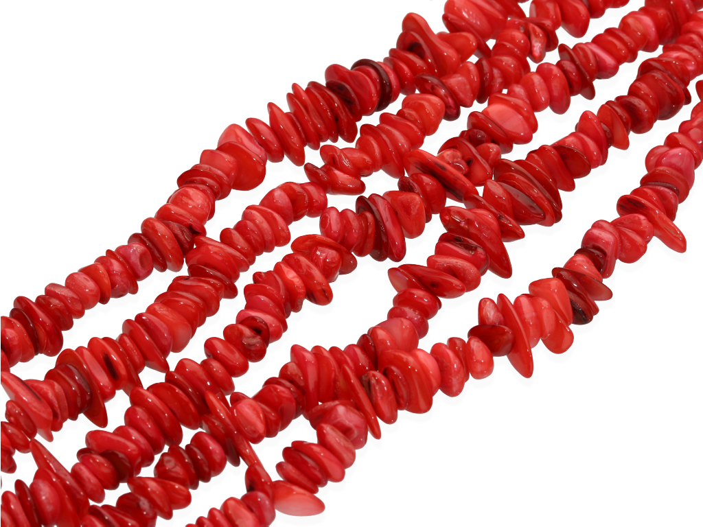 Barwiona muszla w kształcie sieczki, sprzedawana w sznurach bez zapięcia, służących do samodzielnego tworzenia biżuterii. Cena dotyczy jednego sznura, który podczas kompletowania zamówienia jest wybierany losowo.