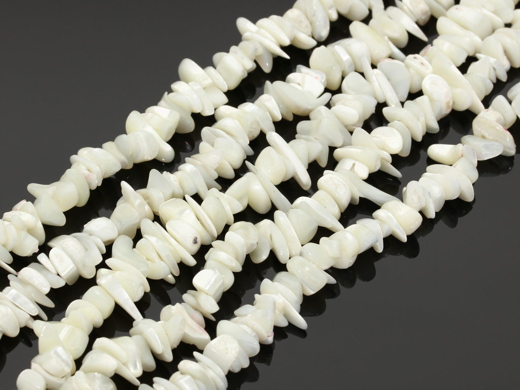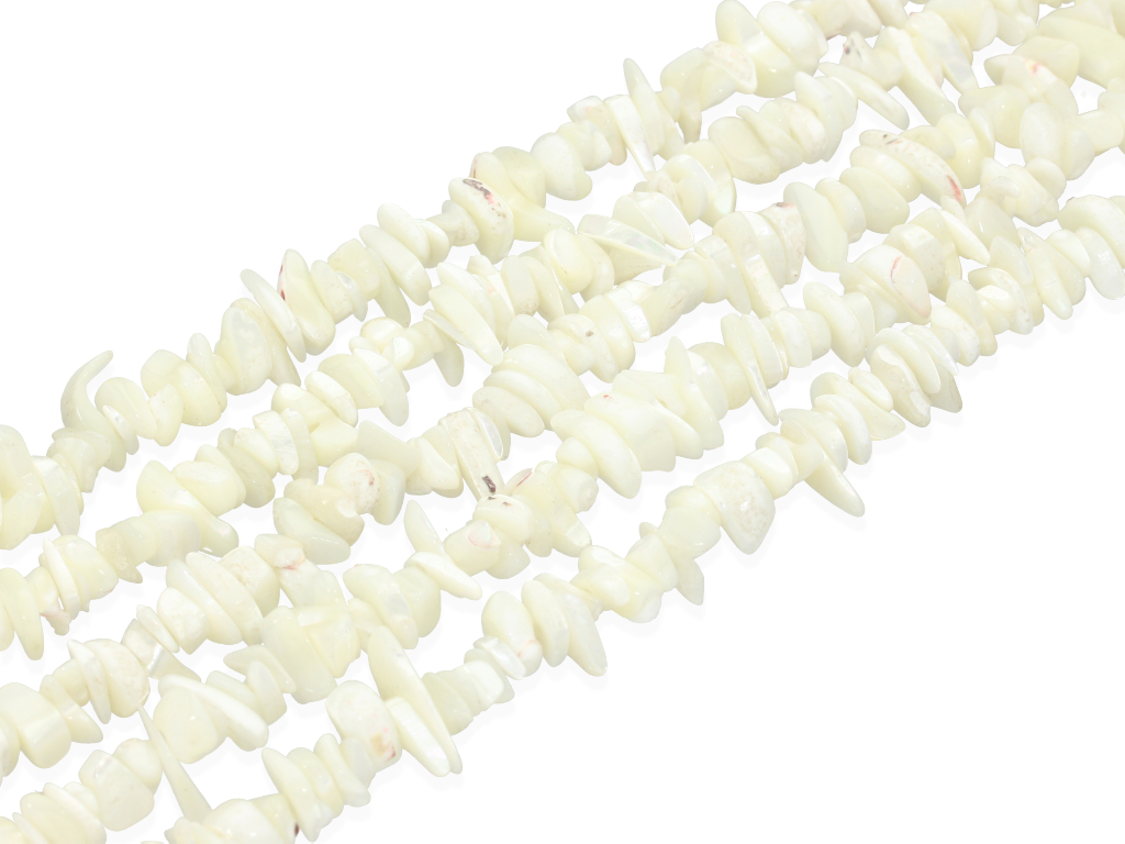 Naturalna muszla w kształcie sieczki, sprzedawana w sznurach bez zapięcia, służących do samodzielnego tworzenia biżuterii. Cena dotyczy jednego sznura, który podczas kompletowania zamówienia jest wybierany losowo.