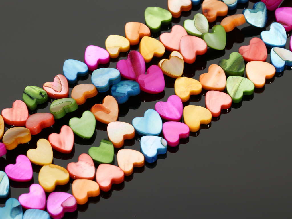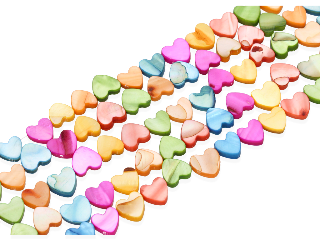 Muszla w kształcie serca, sprzedawana w sznurach bez zapięcia, służących do samodzielnego tworzenia biżuterii. Cena dotyczy jednego sznura, który podczas kompletowania zamówienia jest wybierany losowo.