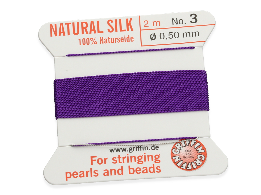 Wysokiej jakości nici jedwabne zakończone igłą ułatwiającą nawlekanie. Świetnie sprawdzą się jako nośnik do bransoletki lub naszyjnika wykonanego z pereł lub minerałów.