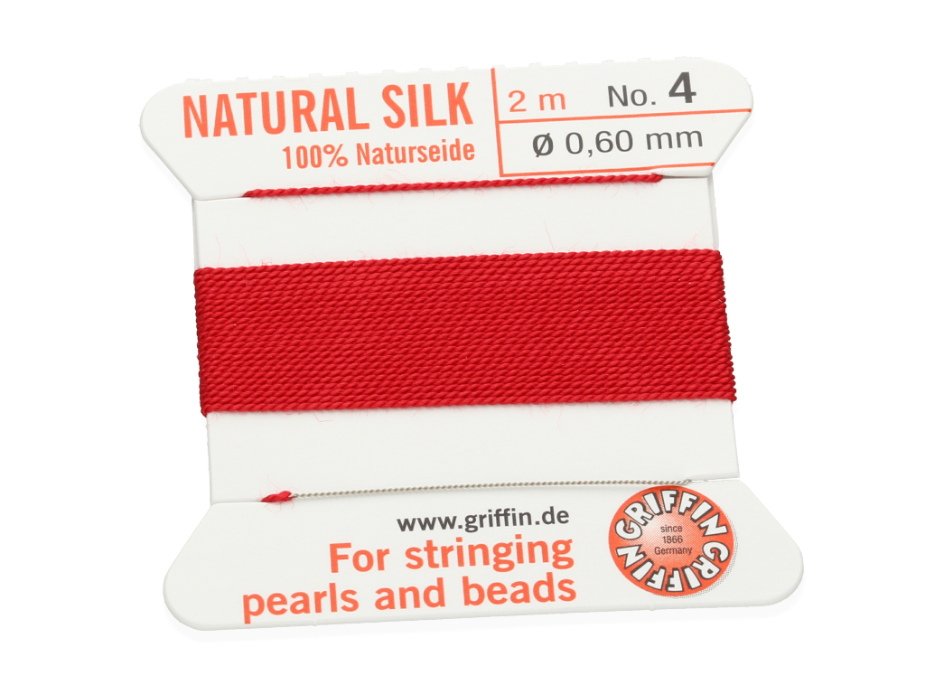Wysokiej jakości nici jedwabne zakończone igłą ułatwiającą nawlekanie. Świetnie sprawdzą się jako nośnik do bransoletki lub naszyjnika wykonanego z pereł lub minerałów.