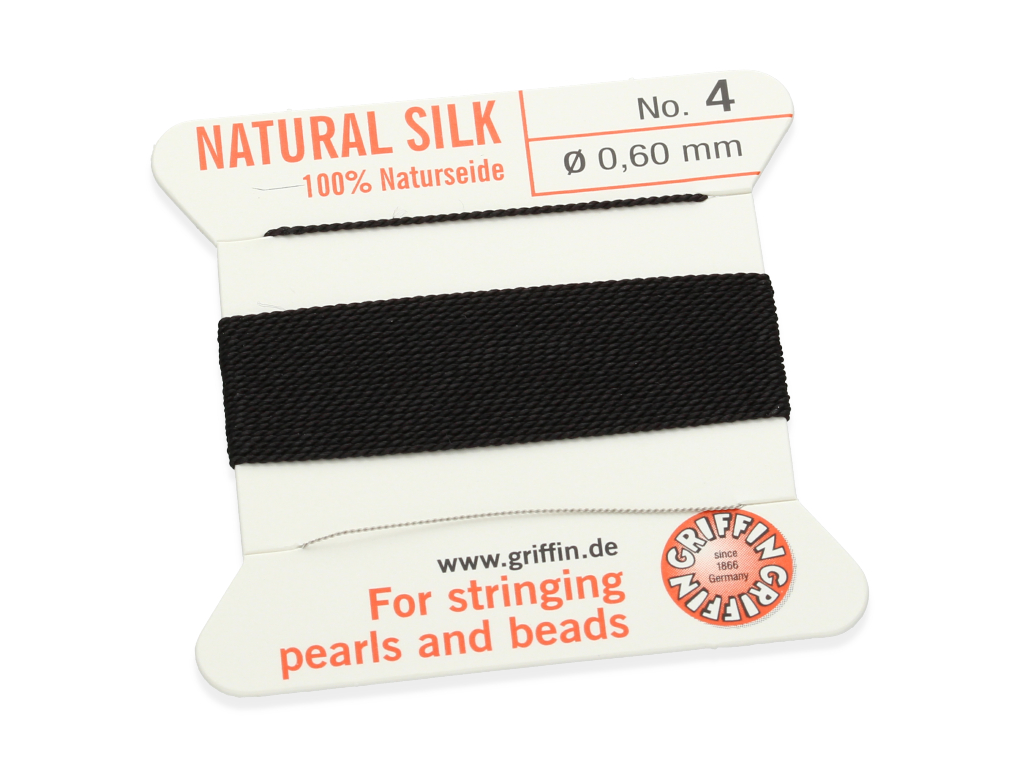 Wysokiej jakości nici jedwabne zakończone igłą ułatwiającą nawlekanie. Świetnie sprawdzą się jako nośnik do bransoletki lub naszyjnika wykonanego z pereł lub minerałów.