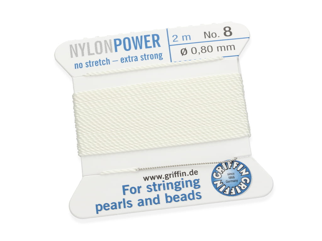 Extra mocne nici nylonowe zakończone igłą ułatwiającą nawlekanie. Świetnie sprawdzą się jako nośnik do bransoletki lub naszyjnika wykonanego z pereł lub minerałów.