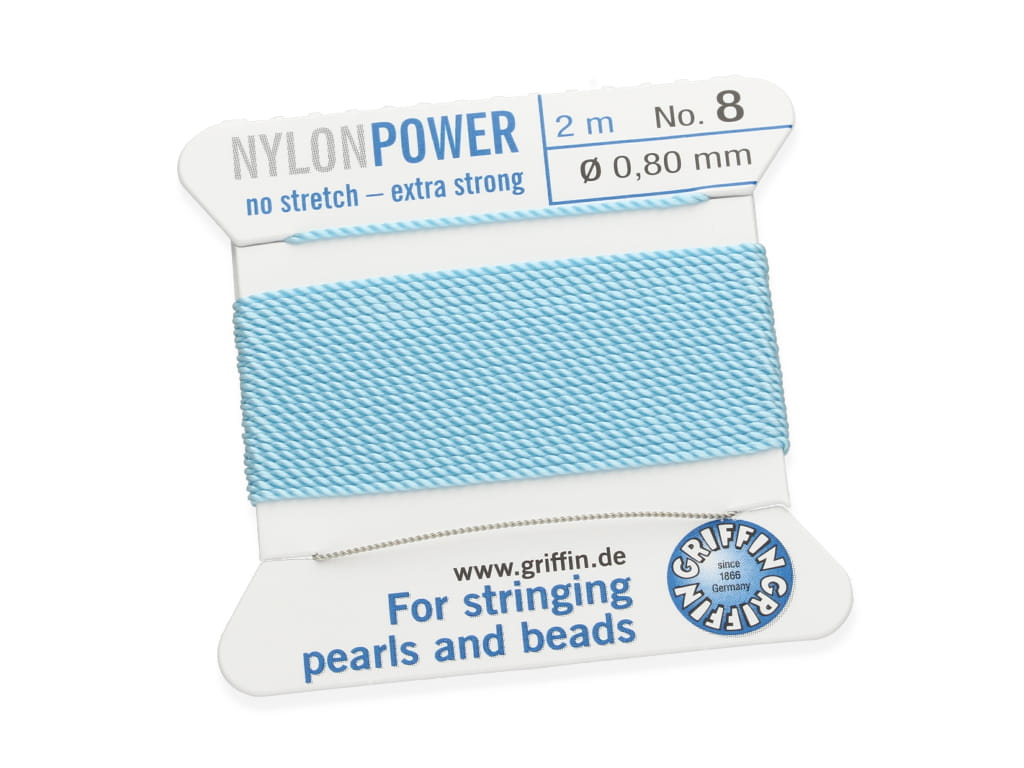 Extra mocne nici nylonowe zakończone igłą ułatwiającą nawlekanie. Świetnie sprawdzą się jako nośnik do bransoletki lub naszyjnika wykonanego z pereł lub minerałów.