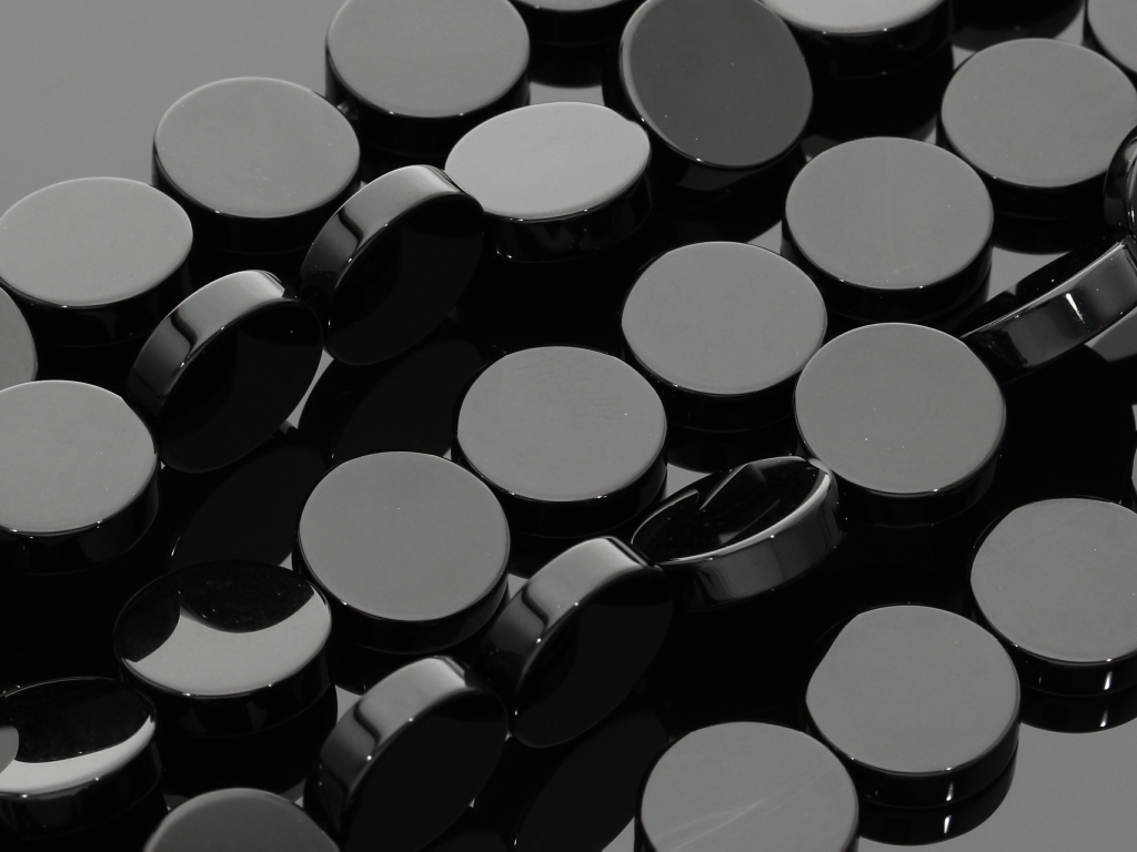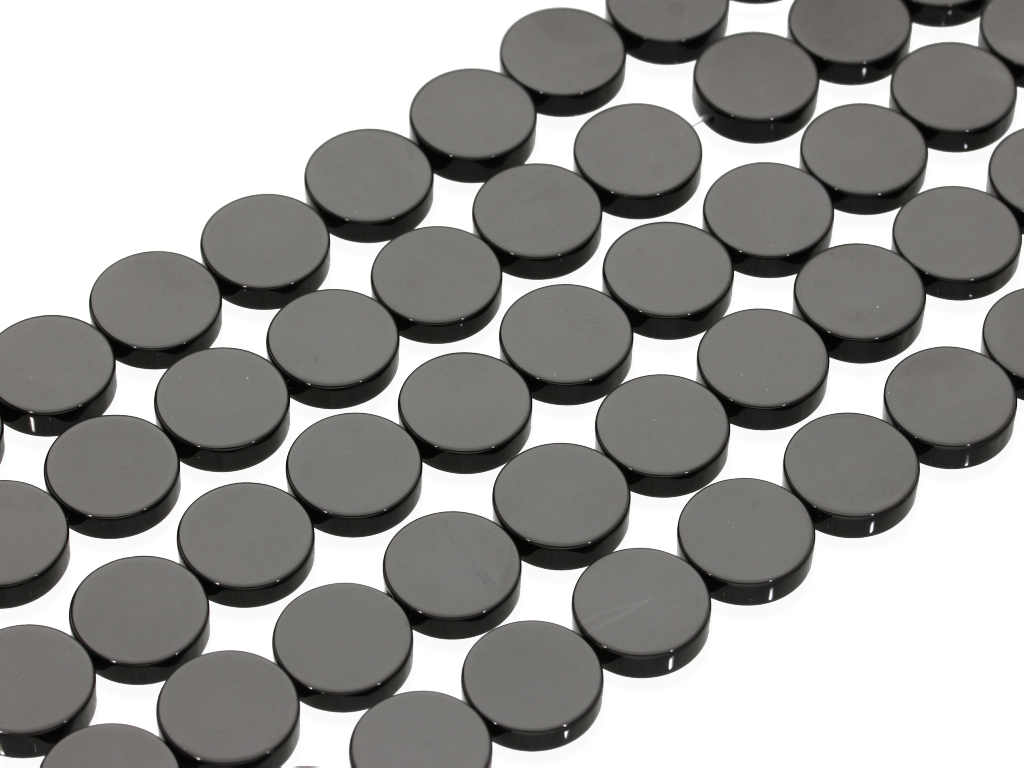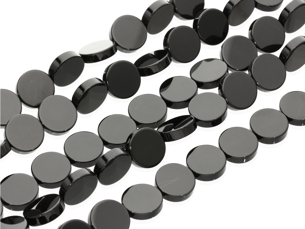 Onyks gradacji jakościowej A w kształcie monety, sprzedawany w sznurach bez zapięcia, służących do samodzielnego tworzenia biżuterii. Cena dotyczy jednego sznura, który podczas kompletowania zamówienia jest wybierany losowo.