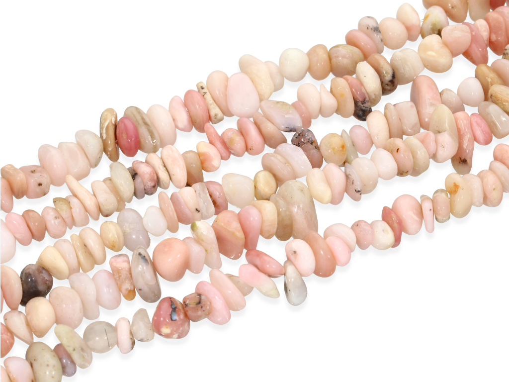 Opal różowy (andyjski) w kształcie sieczki, sprzedawany w sznurach bez zapięcia, służących do samodzielnego tworzenia biżuterii. Cena dotyczy jednego sznura, który podczas kompletowania zamówienia jest wybierany losowo.