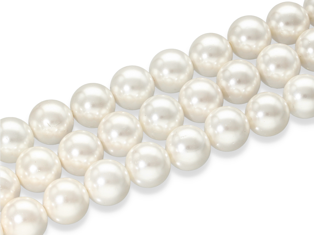 Perła muszlowa w kształcie kulki, sprzedawana w sznurach bez zapięcia, służących do samodzielnego tworzenia biżuterii. Cena dotyczy jednego sznura, który podczas kompletowania zamówienia jest wybierany losowo.