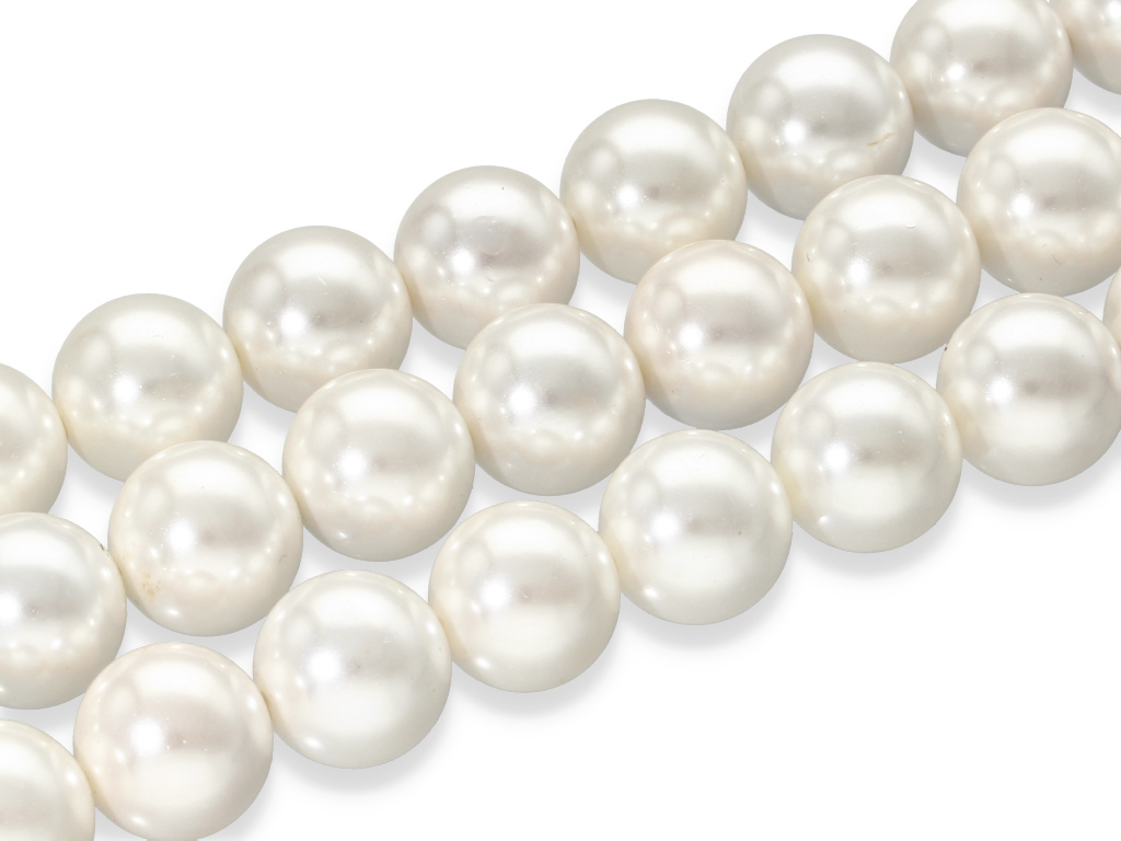 Perła muszlowa w kształcie kulki, sprzedawana w sznurach bez zapięcia, służących do samodzielnego tworzenia biżuterii. Cena dotyczy jednego sznura który podczas kompletowania zamówienia jest wybierany losowo.