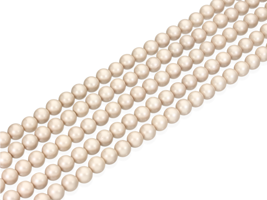 Perła muszlowa w kształcie kulki, sprzedawana w sznurach bez zapięcia, służących do samodzielnego tworzenia biżuterii. Cena dotyczy jednego sznura, który podczas kompletowania zamówienia jest wybierany losowo.