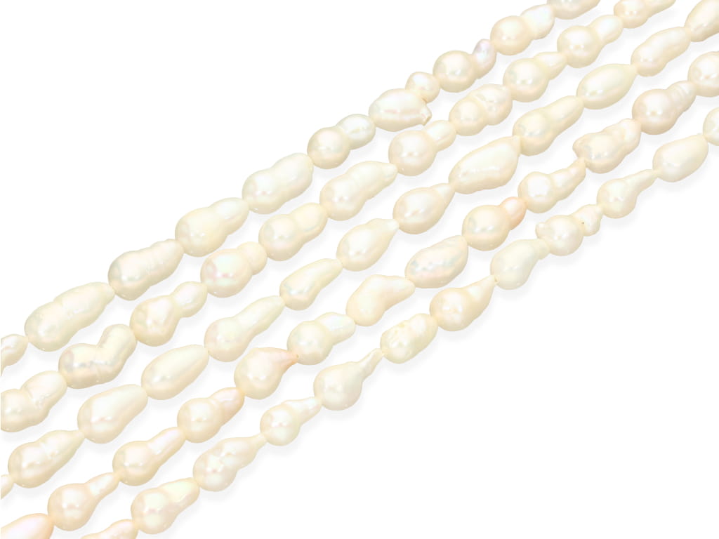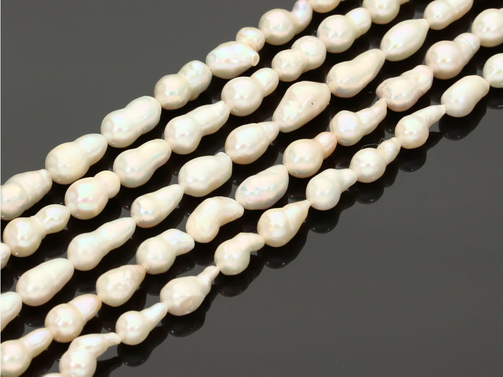 Perła słodkowodna o nieregularnym kształcie, sprzedawana w sznurach bez zapięcia, służących do samodzielnego tworzenia biżuterii. Cena dotyczy jednego sznura, który podczas kompletowania zamówienia jest wybierany losowo.
