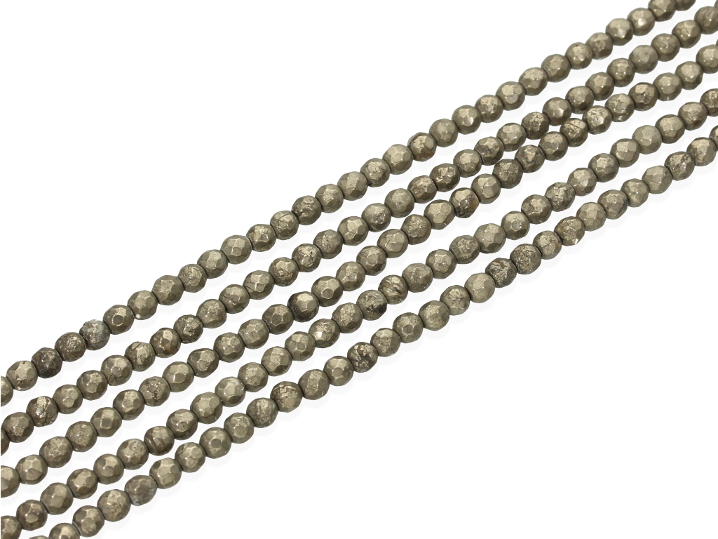 Piryt w kształcie fasetowanej kulki, sprzedawany w sznurach bez zapięcia, służących do samodzielnego tworzenia biżuterii. Cena dotyczy jednego sznura o długości ~ 19cm, który podczas kompletowania zamówienia jest wybierany losowo.