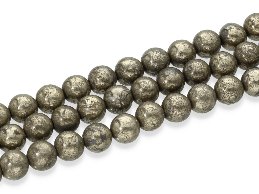 Piryt w kształcie kulki, sprzedawany w sznurach bez zapięcia, służących do samodzielnego tworzenia biżuterii. Cena dotyczy jednego sznura o długości ~ 19 cm, który podczas kompletowania zamówienia jest wybierany losowo.