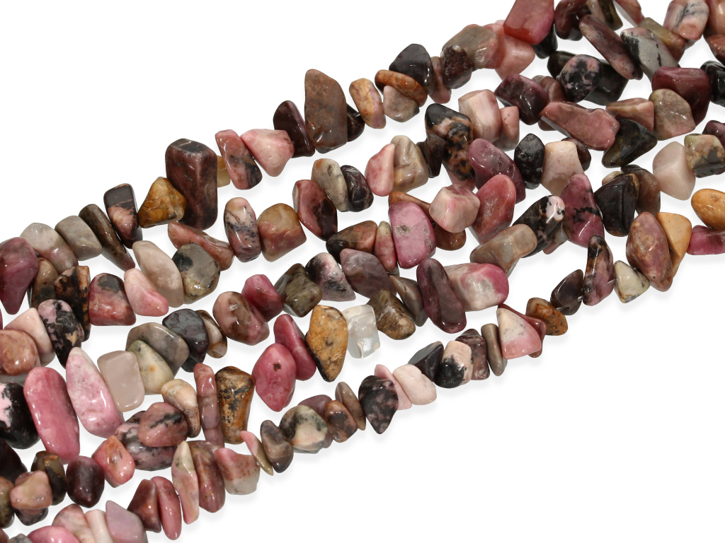 Rodonit w kształcie sieczki, sprzedawany w sznurach bez zapięcia, służących do samodzielnego tworzenia biżuterii. Cena dotyczy jednego sznura o długości ~ 19 cm, który podczas kompletowania zamówienia jest wybierany losowo.