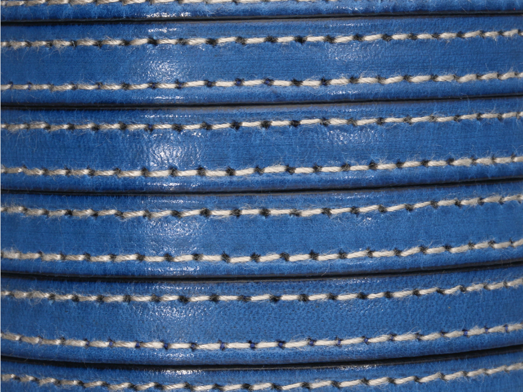 Podwójnie przeszyty białą nicią.