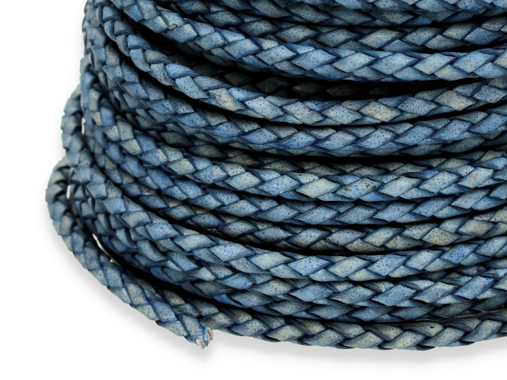 Rzemień naturalny pleciony 3mm niebieski vintage [20cm]