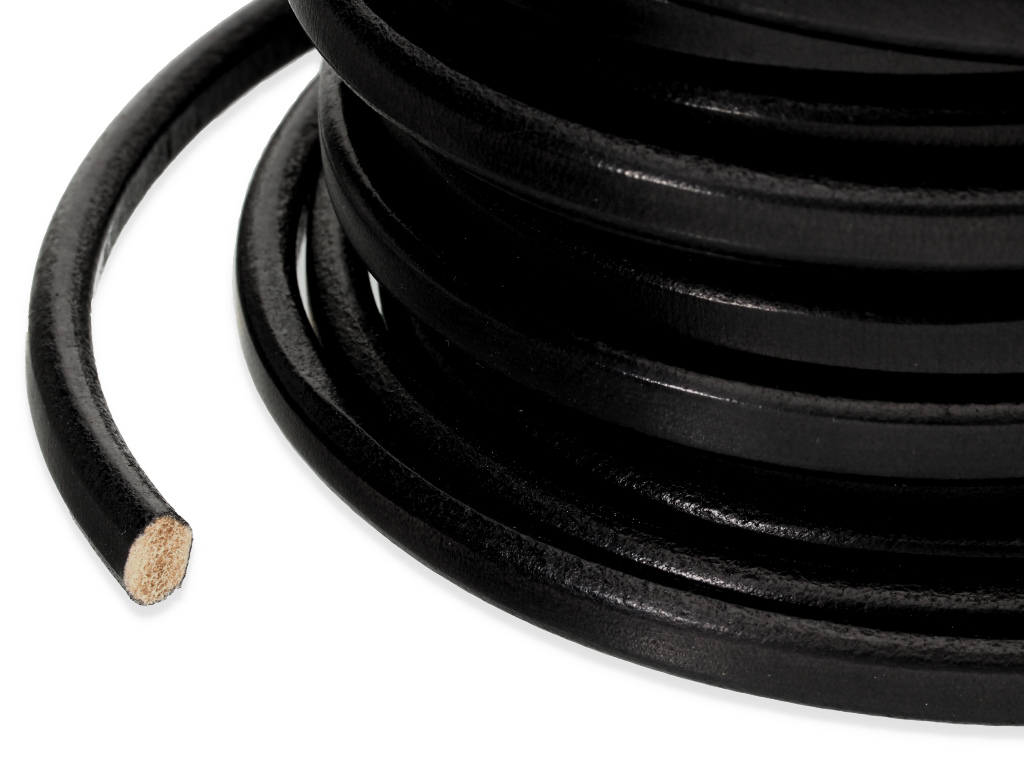 Rzemień naturalny prostokątny 9,5x6,5mm czarny [20cm]