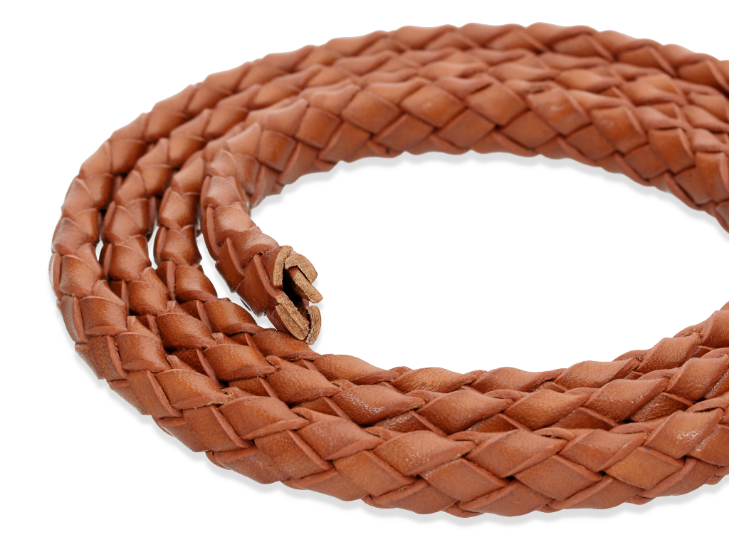 Rzemień pleciony, wykonany z wysokiej jakości skóry licowej.
