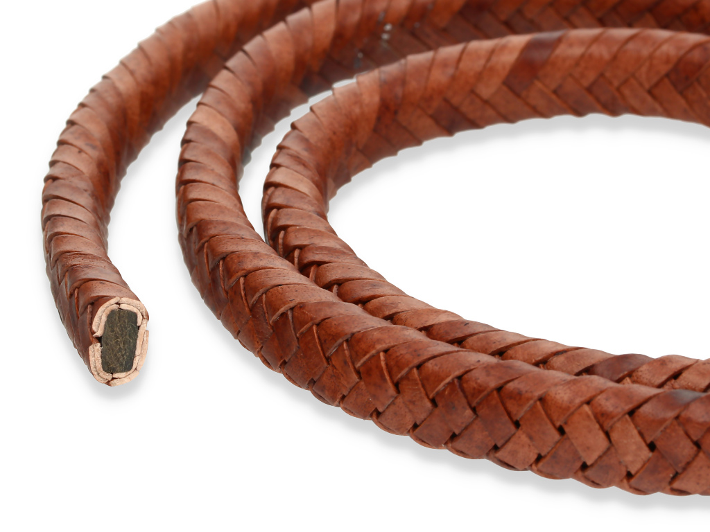 Rzemień naturalny pleciony wyprodukowany w Indiach.