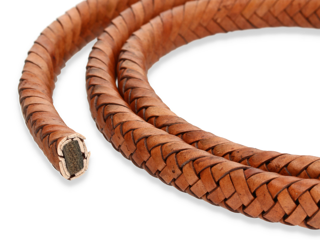 Rzemień pleciony 10x7mm karmelowy vintage [20cm]