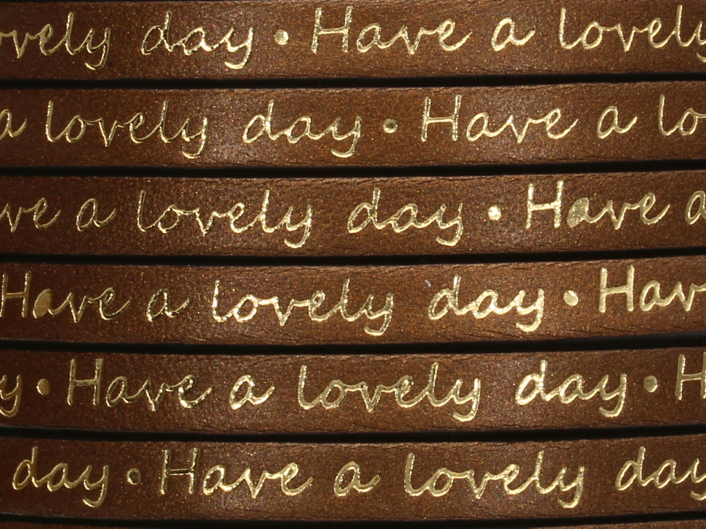 Na rzemieniu naniesiono sentencję: “Have a lovely day” w kolorze złotym.