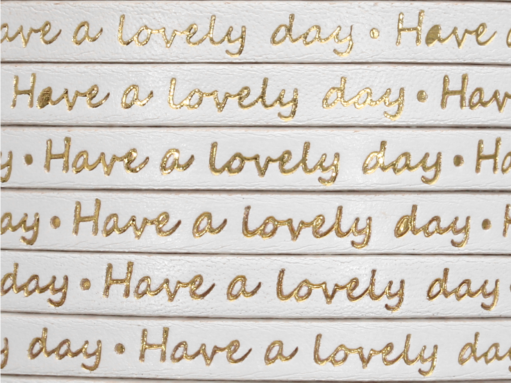 Rzemień z napisem 6x1,8mm biały/złoty [20cm]