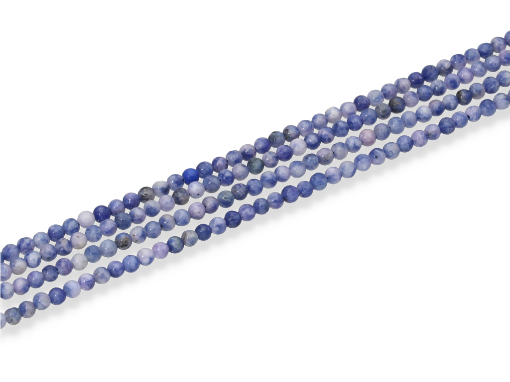 Sodalit w kształcie kulki, sprzedawany w sznurach bez zapięcia, służących do samodzielnego tworzenia biżuterii. Cena dotyczy jednego sznura, który podczas kompletowania zamówienia jest wybierany losowo.