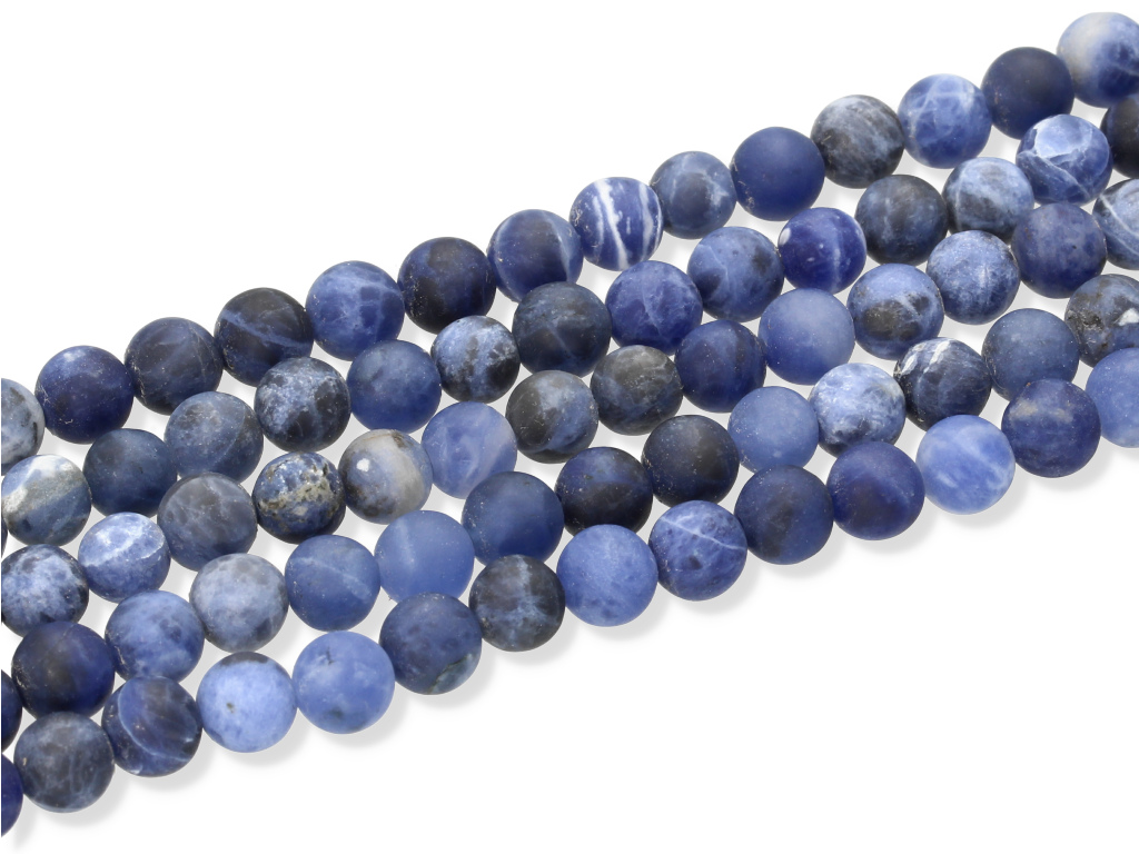 Sodalit w kształcie kulki, sprzedawany w sznurach bez zapięcia, służących do samodzielnego tworzenia biżuterii. Cena dotyczy jednego sznur, który podczas kompletowania zamówienia jest wybierany losowo.