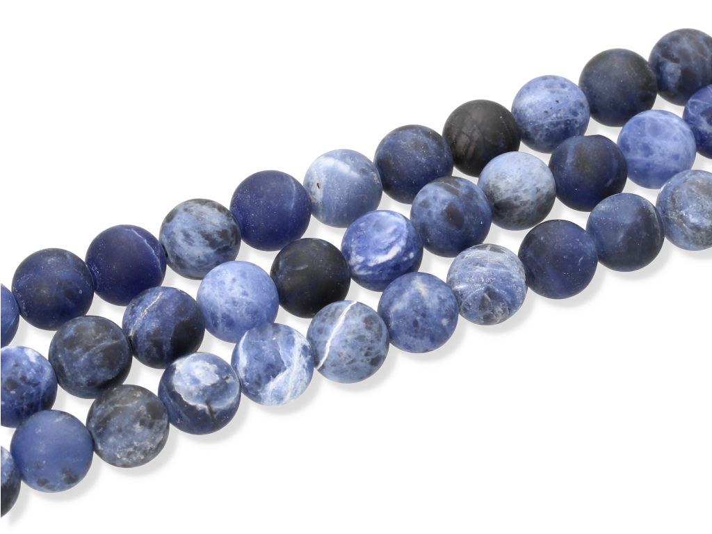 Sodalit w kształcie kulki, sprzedawany w sznurach bez zapięcia, służących do samodzielnego tworzenia biżuterii. Cena dotyczy jednego sznura, który podczas kompletowania zamówienia jest wybierany losowo.