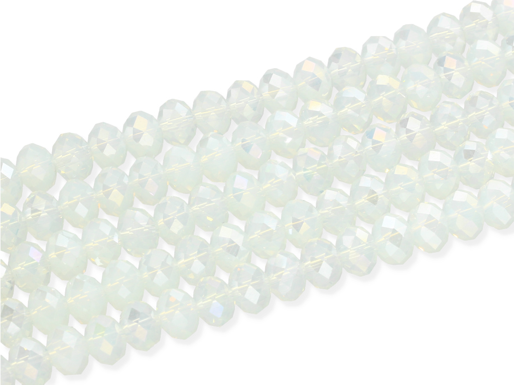 Szkło kryształowe w kształcie oponki fasetowanej, sprzedawane w sznurach bez zapięcia, służących do samodzielnego tworzenia biżuterii. Cena dotyczy jednego sznura o długości ~ 19 cm, który podczas kompletowania zamówienia jest wybierany losowo.