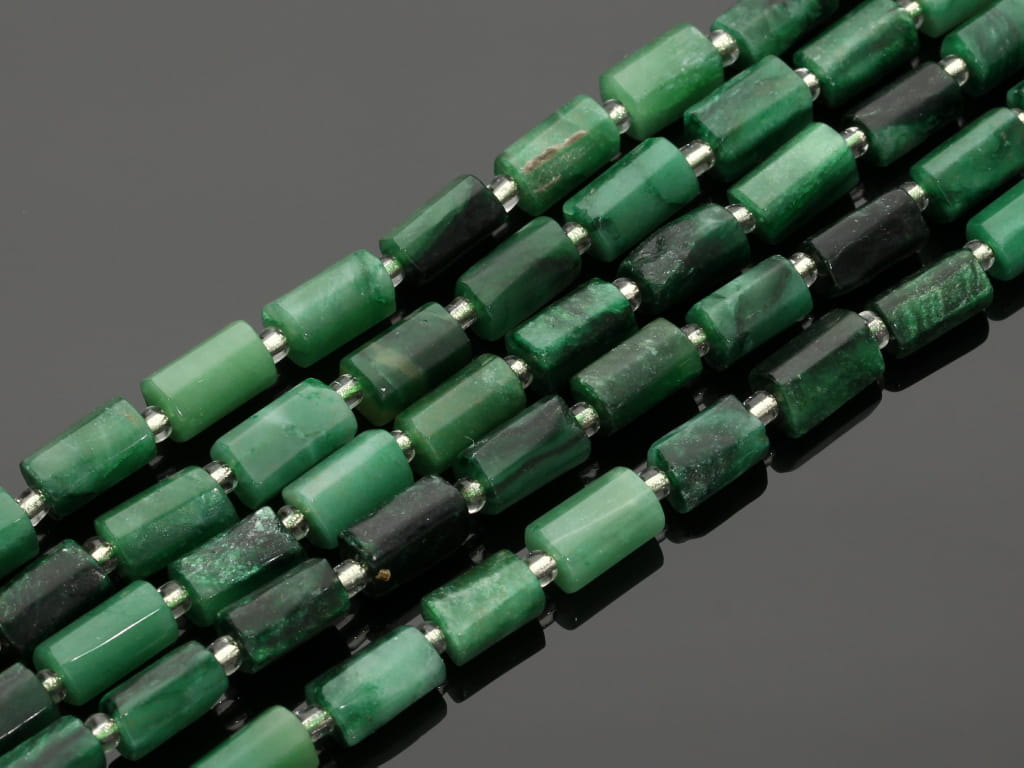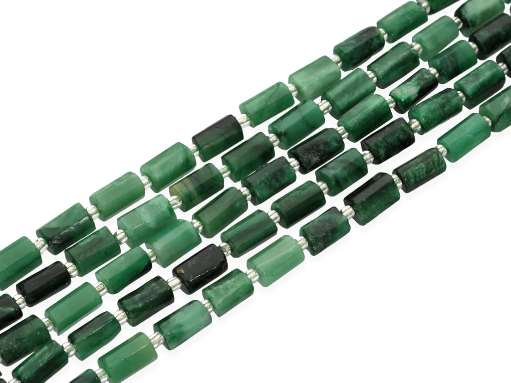Szmaragd w kształcie ciosanego walca, sprzedawany w sznurach bez zapięcia, służących do samodzielnego tworzenia biżuterii. Cena dotyczy jednego sznura, który podczas kompletowania zamówienia jest wybierany losowo.