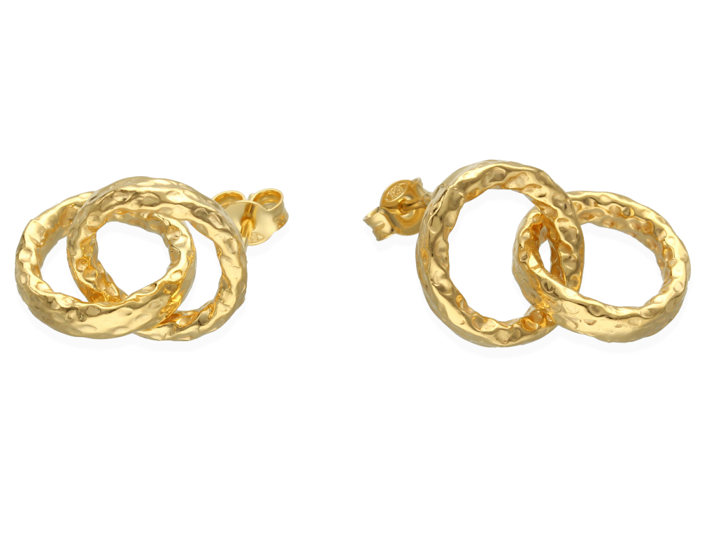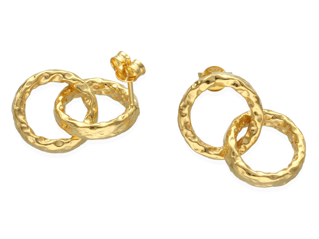 Sztyfty ozdobne w formie połączonych ze sobą młotkowanych kół, które można nosić samodzielnie lub z dodatkowymi elementami ozdobnymi.